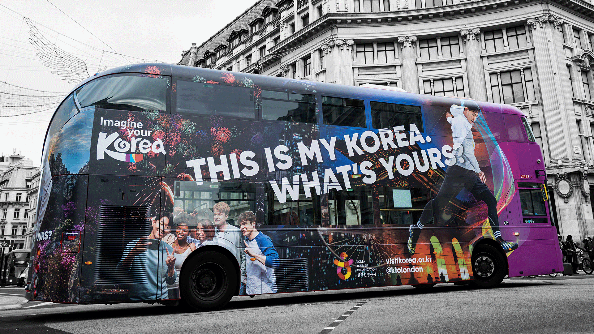 I designed a vibrant bus wrap for Imagine Your Korea, showcasing football star Son Heung-min as the face of the campaign. Using the brand’s bright, energetic colour palette and bold typography, the design brought Korean culture and pride to life on the move. The striking imagery and dynamic layout celebrated both Son’s global appeal and Korea’s spirited identity.